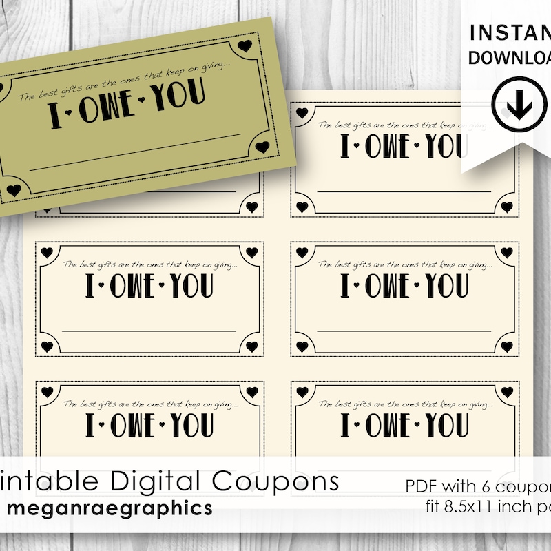 Printable Digital i OWE You Coupon for Birthdays Valentines Day