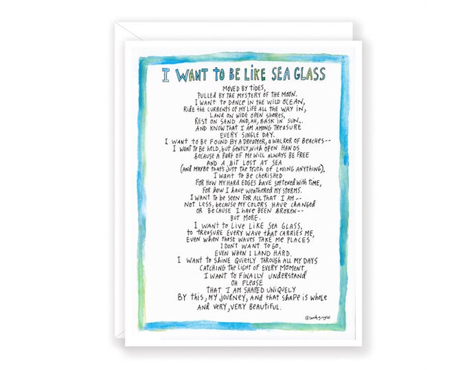 LARGE Sea Glass Poem/I want to age like Sea glass/Blues and Etsy