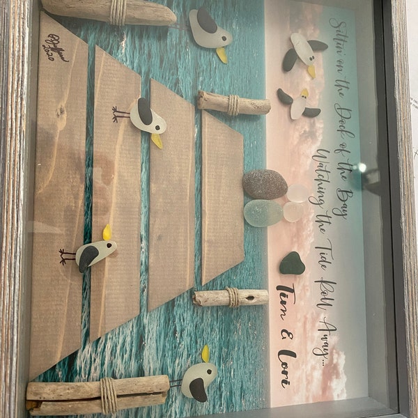 Handmade Large Sea Glass Poem Sea Glass Colorful Stone Picture Frame