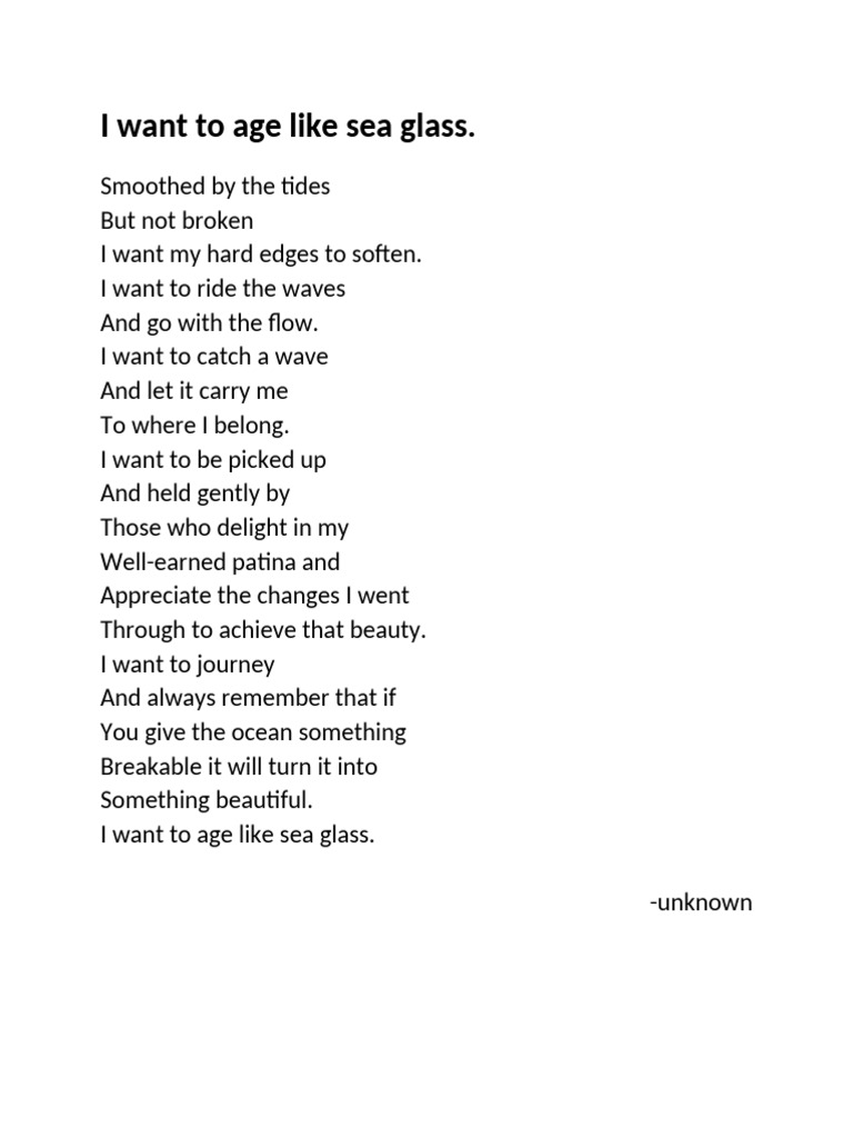 POEM I want to age like sea glass By Bernadette Noll : r/Poetry