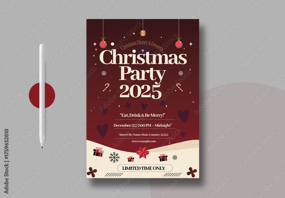 Elegant Christmas Party Invitation Poster 2025 Stock Template Adobe Stock