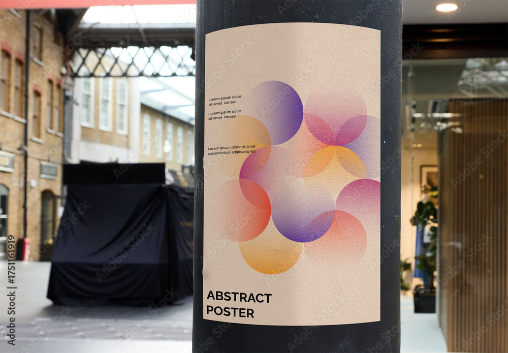 Urban poster Mockup in London glued onto a circular column Stock
