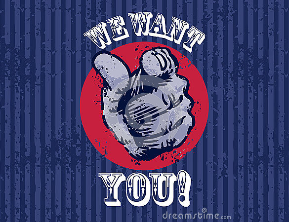 We Want You A poster of the words We Want You with a finger pointing