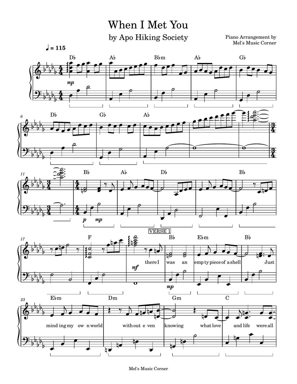 Apo Hiking Society When I Met You WEDDING VERSION ( piano sheet music