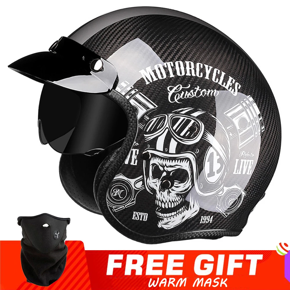 Carbon Fiber Helmet Motorcycle 3 4 Open Face Men Women Retro Helmet DOT