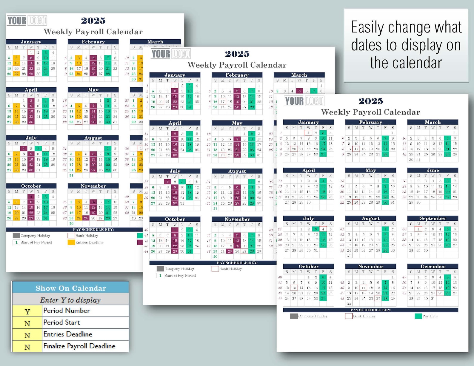 Annual Payroll Calendar Template excel Download printable Etsy