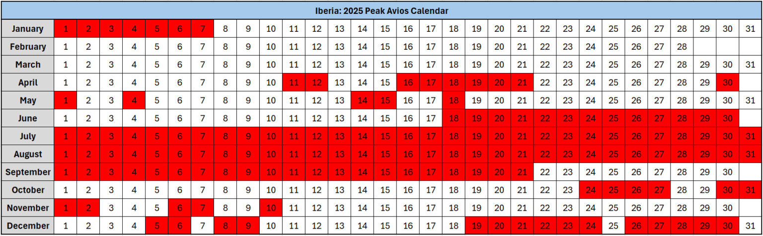 Avios Peak Calendars: 2025 Peak and Off Peak Dates
