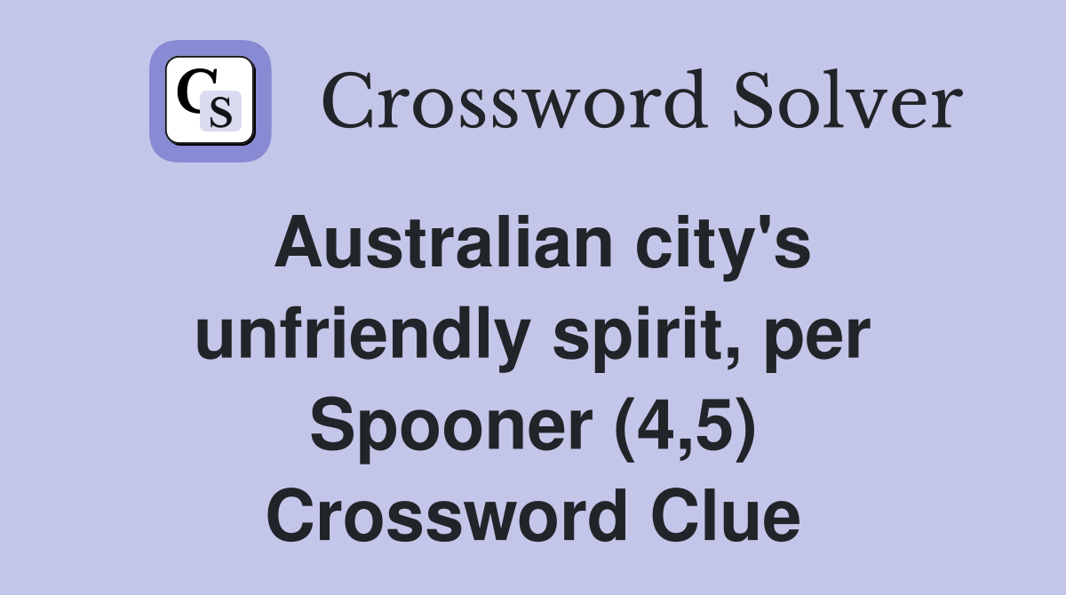 Australian city #39 s unfriendly spirit per Spooner (4 5) Crossword Clue