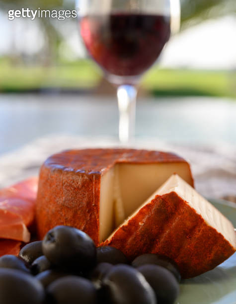 Tastes of Spain jamon iberian black olives manchego cheese with red