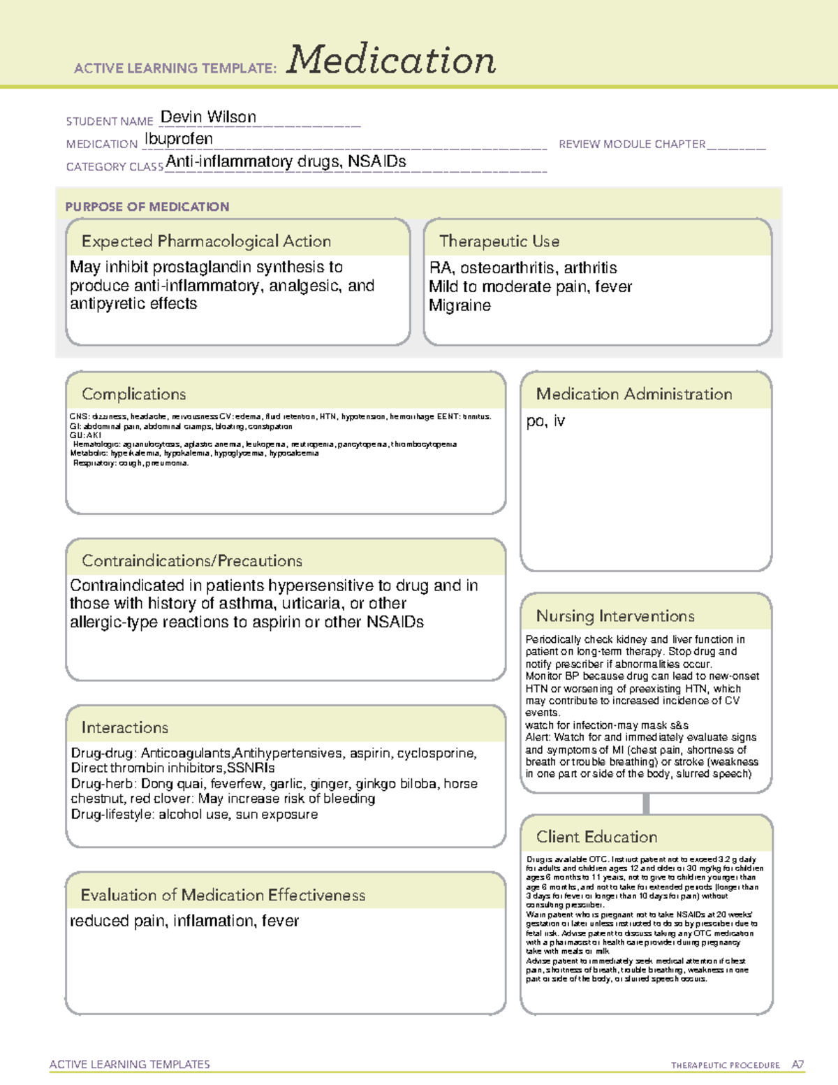 Medication template ATI ibuprofen ACTIVE LEARNING TEMPLATES
