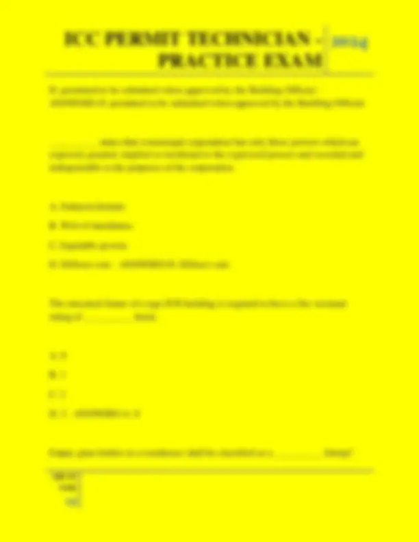 ICC PERMIT TECHNICIAN PRACTICE EXAM QUESTIONS AND ANSWERS 2025