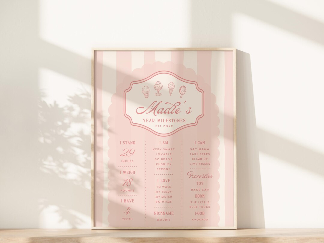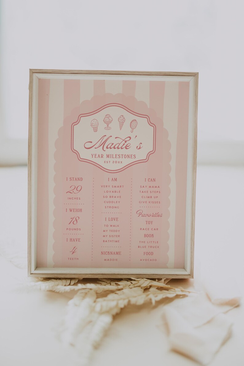 Ice Cream Milestone Sign Pink Ice Cream Birthday Party Ice Cream Social