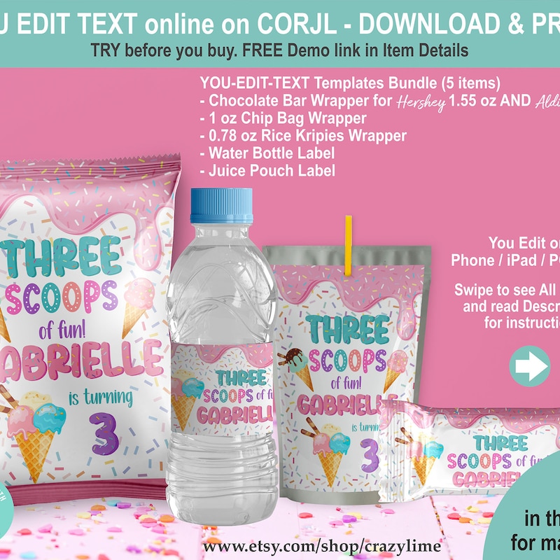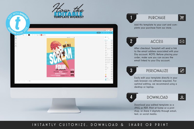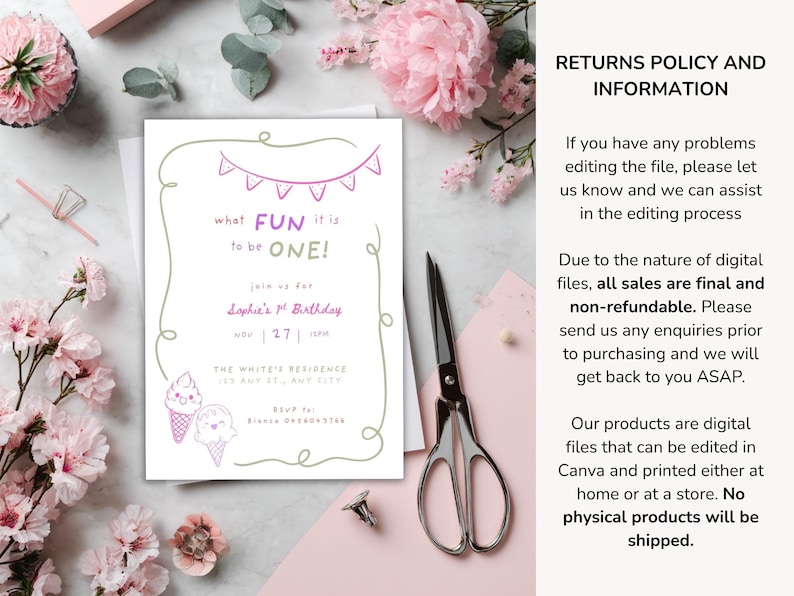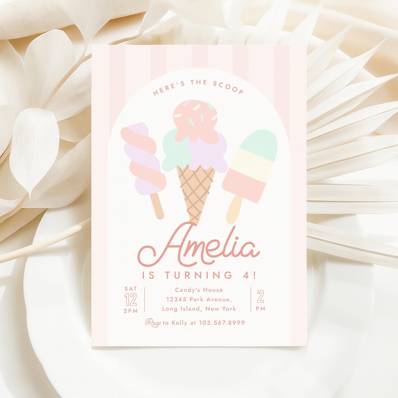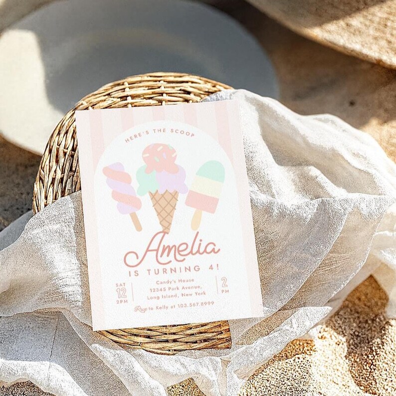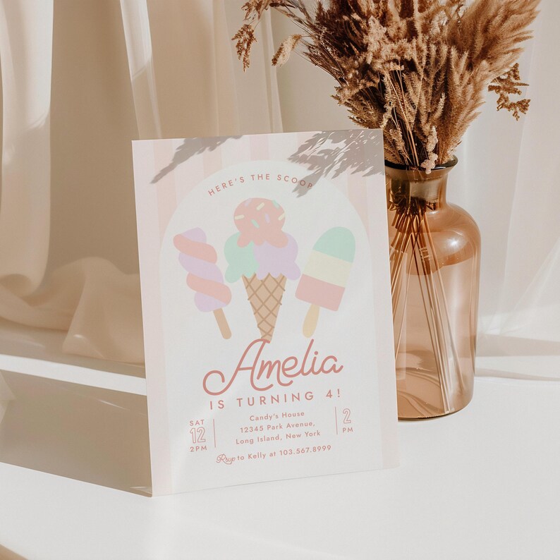 Editable Ice Cream Birthday Invitation Digital Template Party