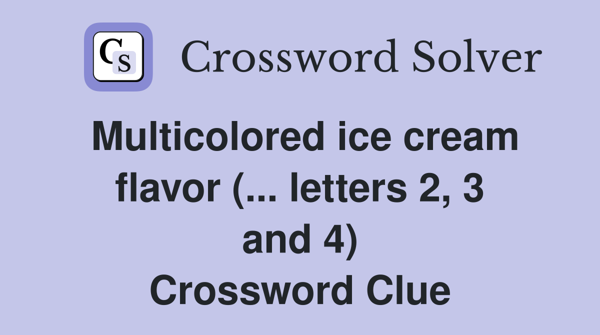 Multicolored ice cream flavor ( letters 2 3 and 4) Crossword Clue