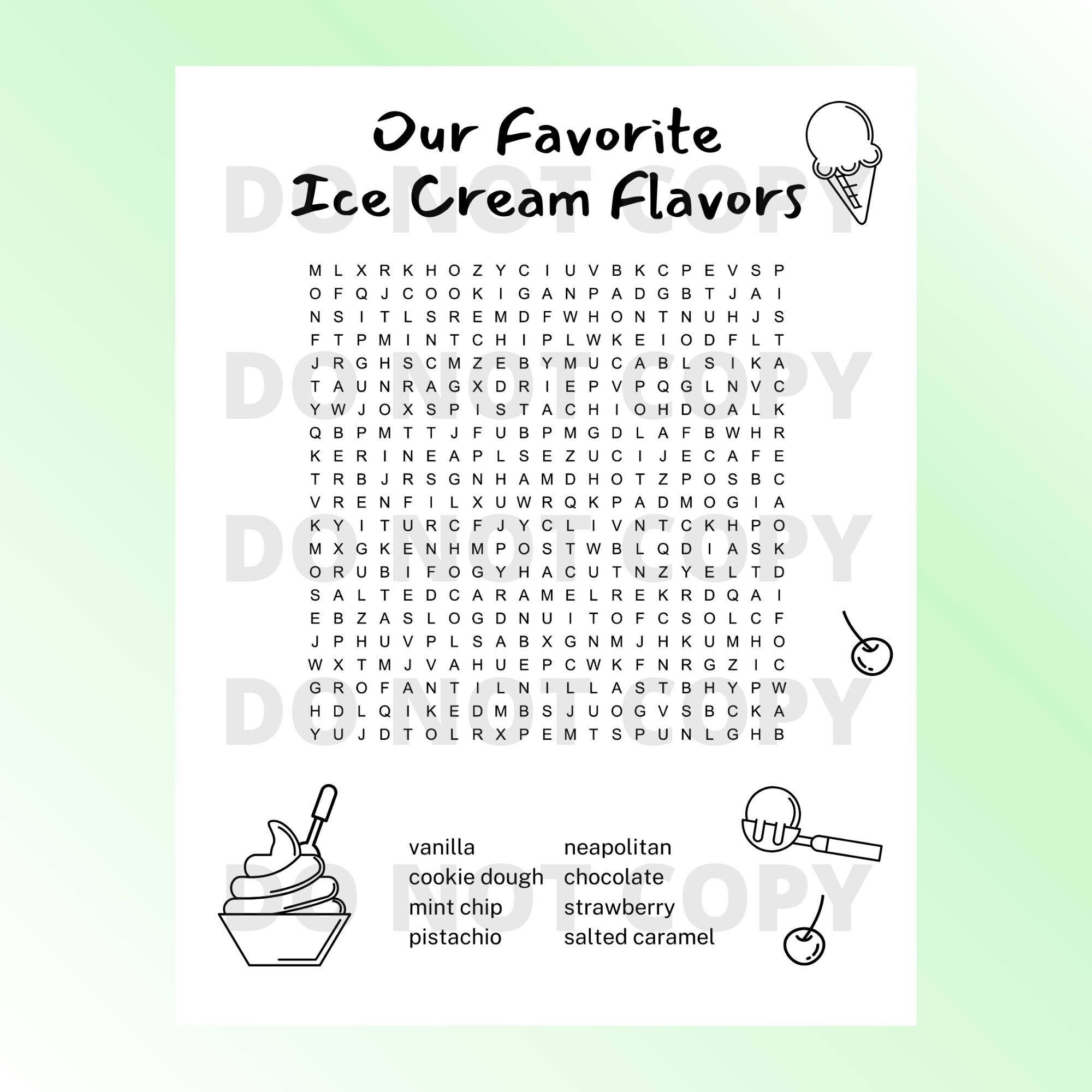 Ice Cream Flavors Word Search Printable 8 5x11 Inch Etsy