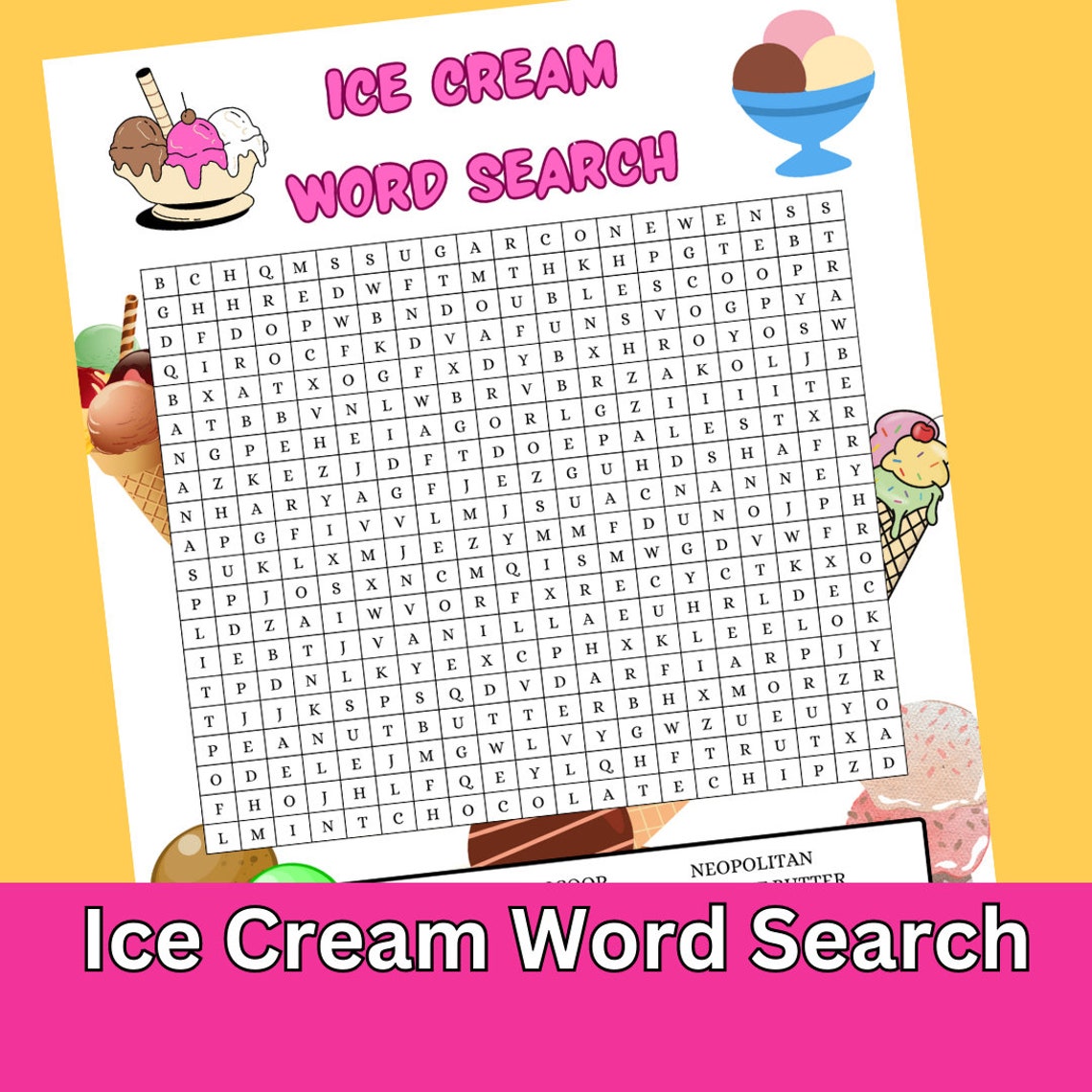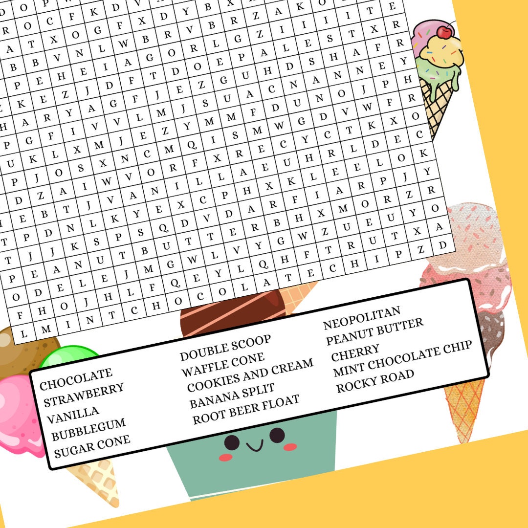 Ice Cream Word Search Word Search for Kids Word Search Etsy