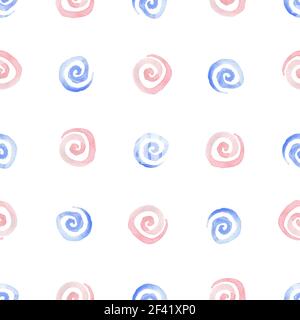 Watercolor seamless pattern with blue and pink ice cream in a waffle