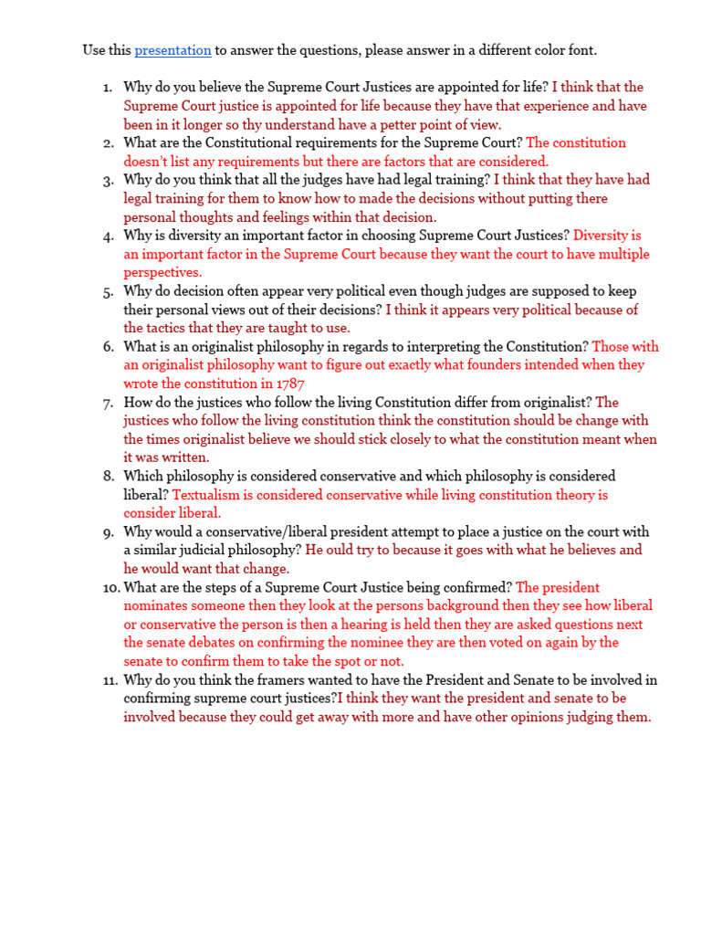 Supreme Court Nominations Icivics Answers