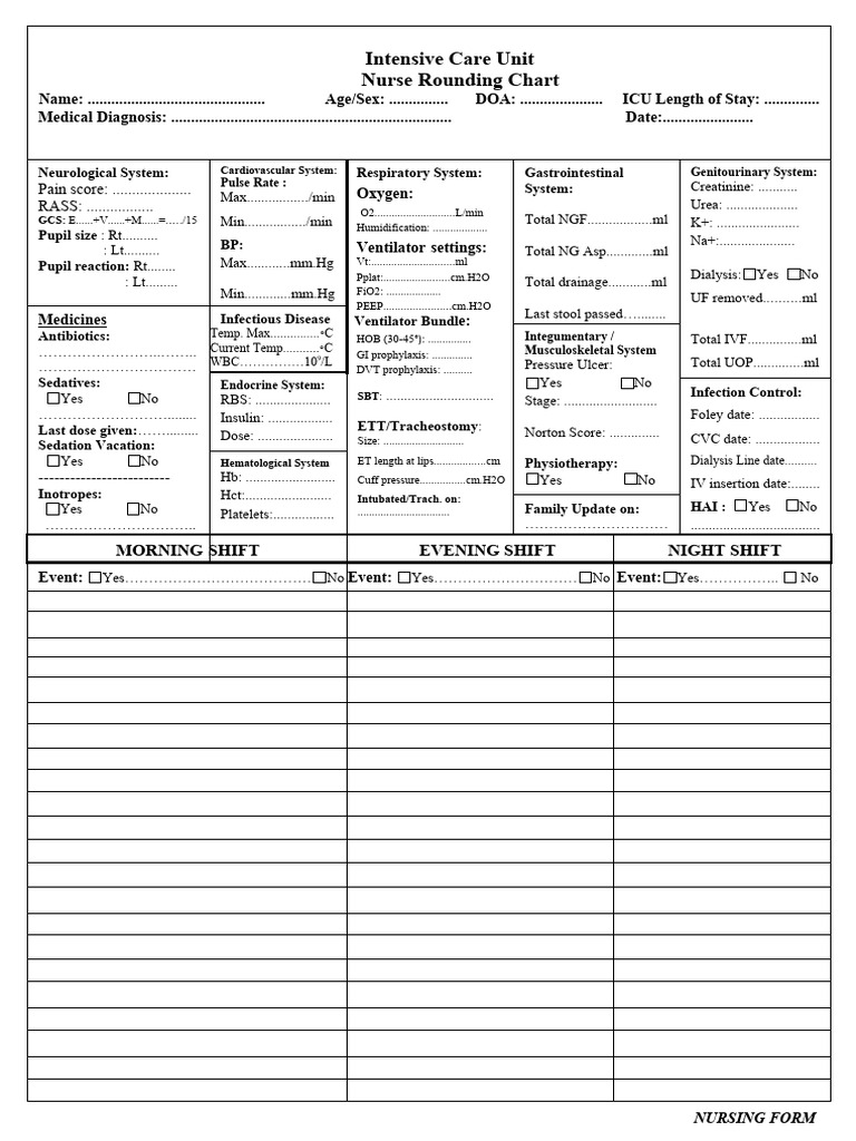 Nurses Use in ICU Rounds Chart PDF Intensive Care Medicine