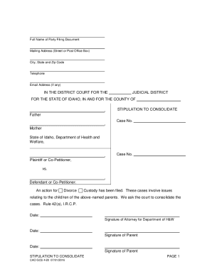 Fillable Online courtselfhelp idaho STIPULATION TO CONSOLIDATE PAGE 1