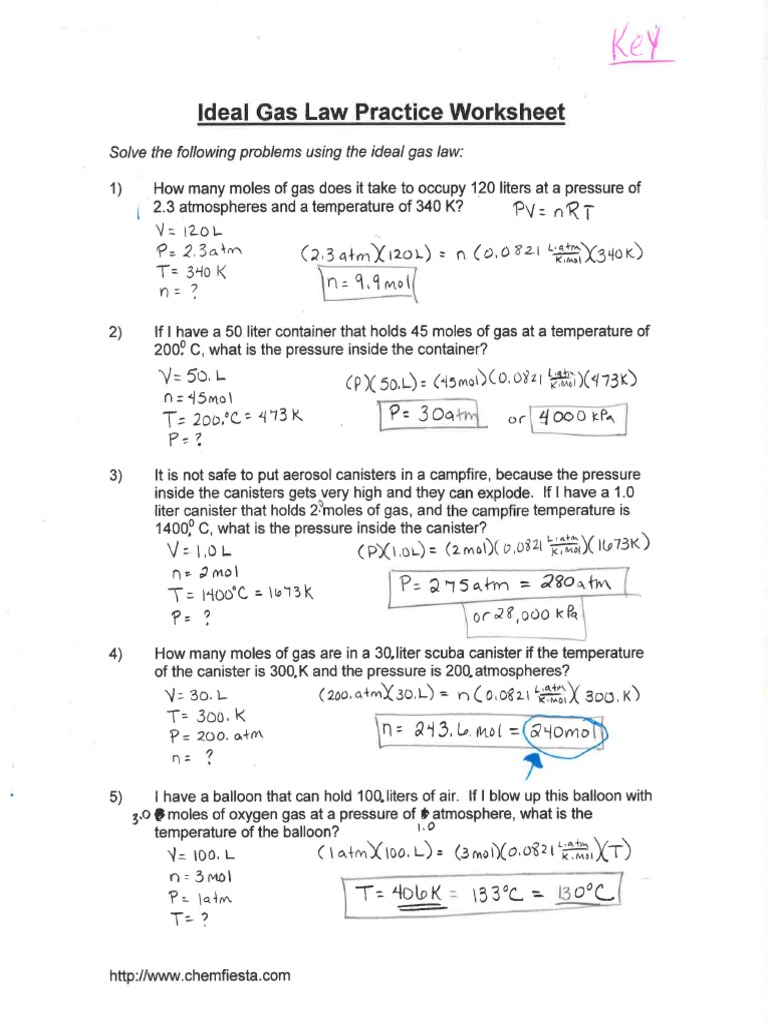 Ideal Gas Law Worksheet and Answer Key Chemistry Keystone Science