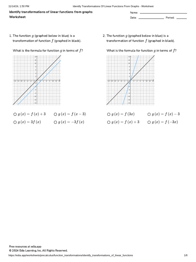 Identify Transformations of Linear Functions From Graphs Worksheet