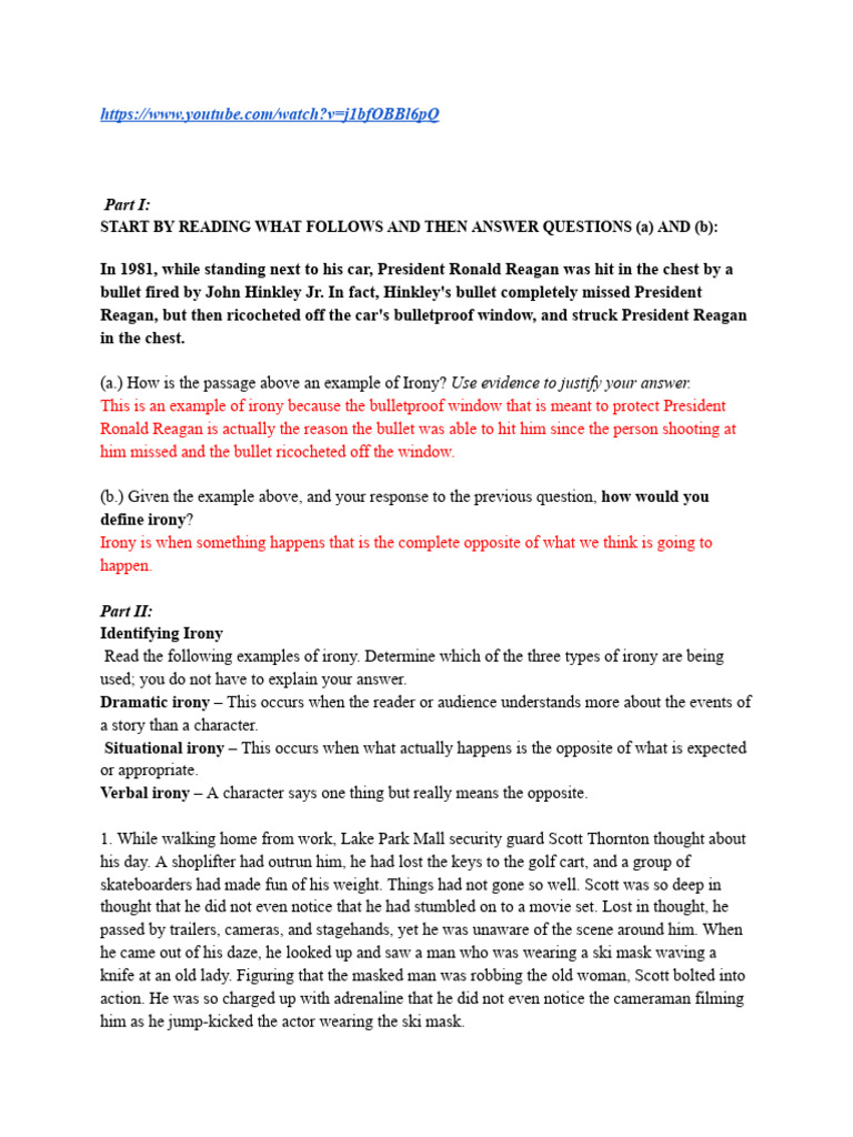 Irony worksheet answers Name: Identifying Irony Directions: Read