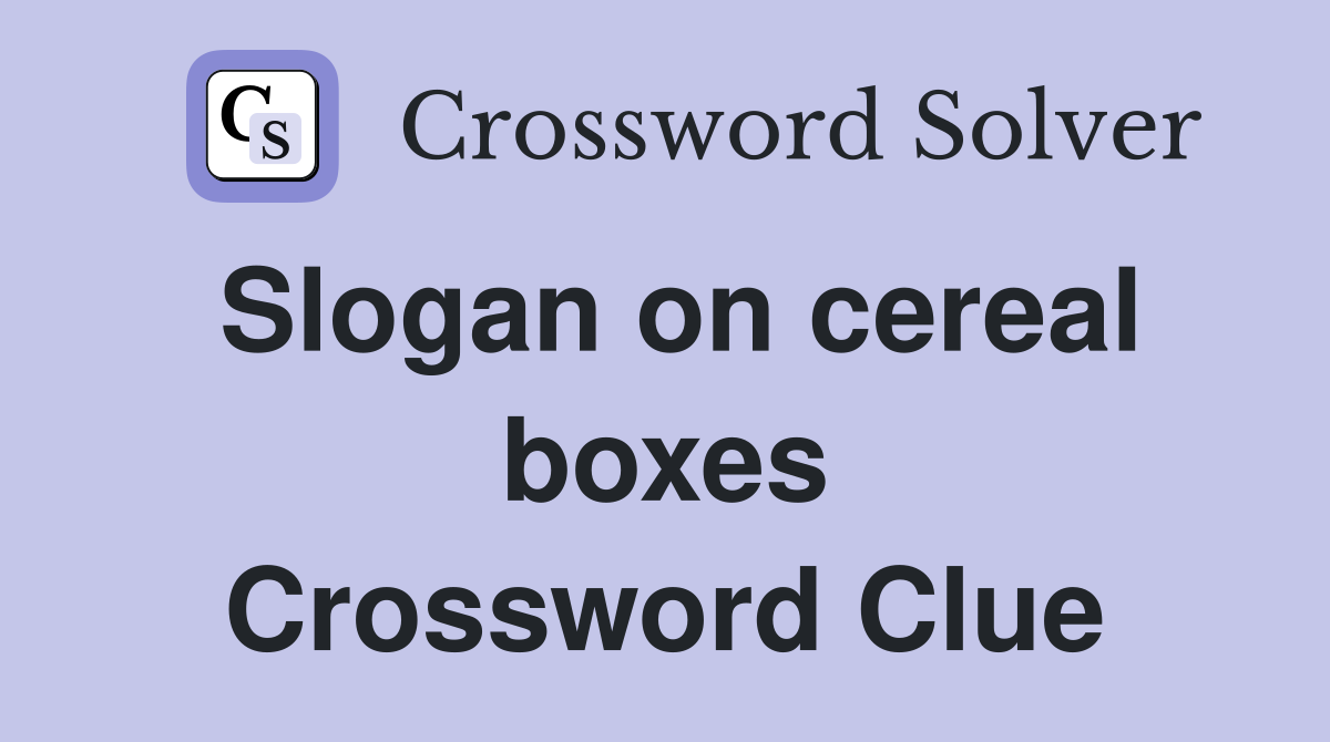 Slogan on cereal boxes Crossword Clue Answers Crossword Solver