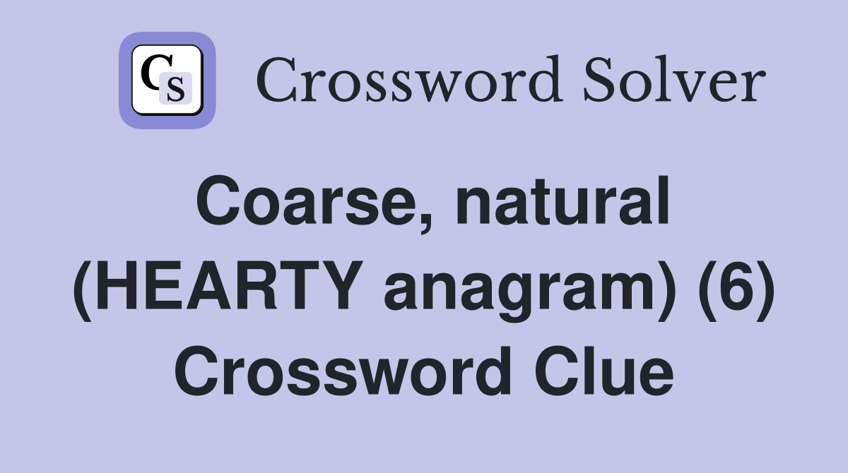 Coarse natural (HEARTY anagram) (6) Crossword Clue Answers
