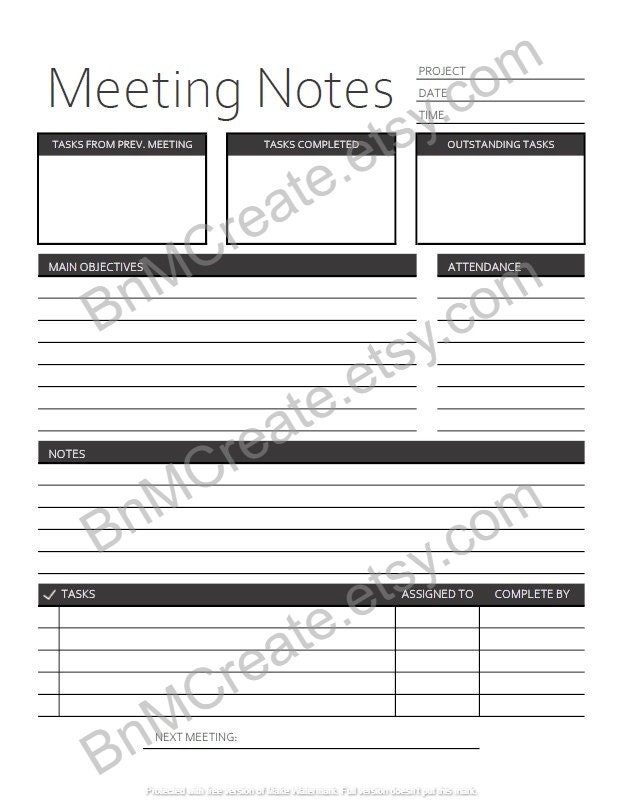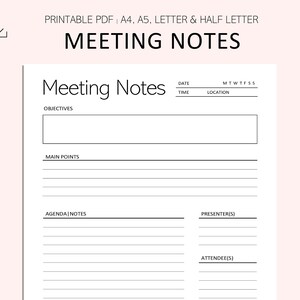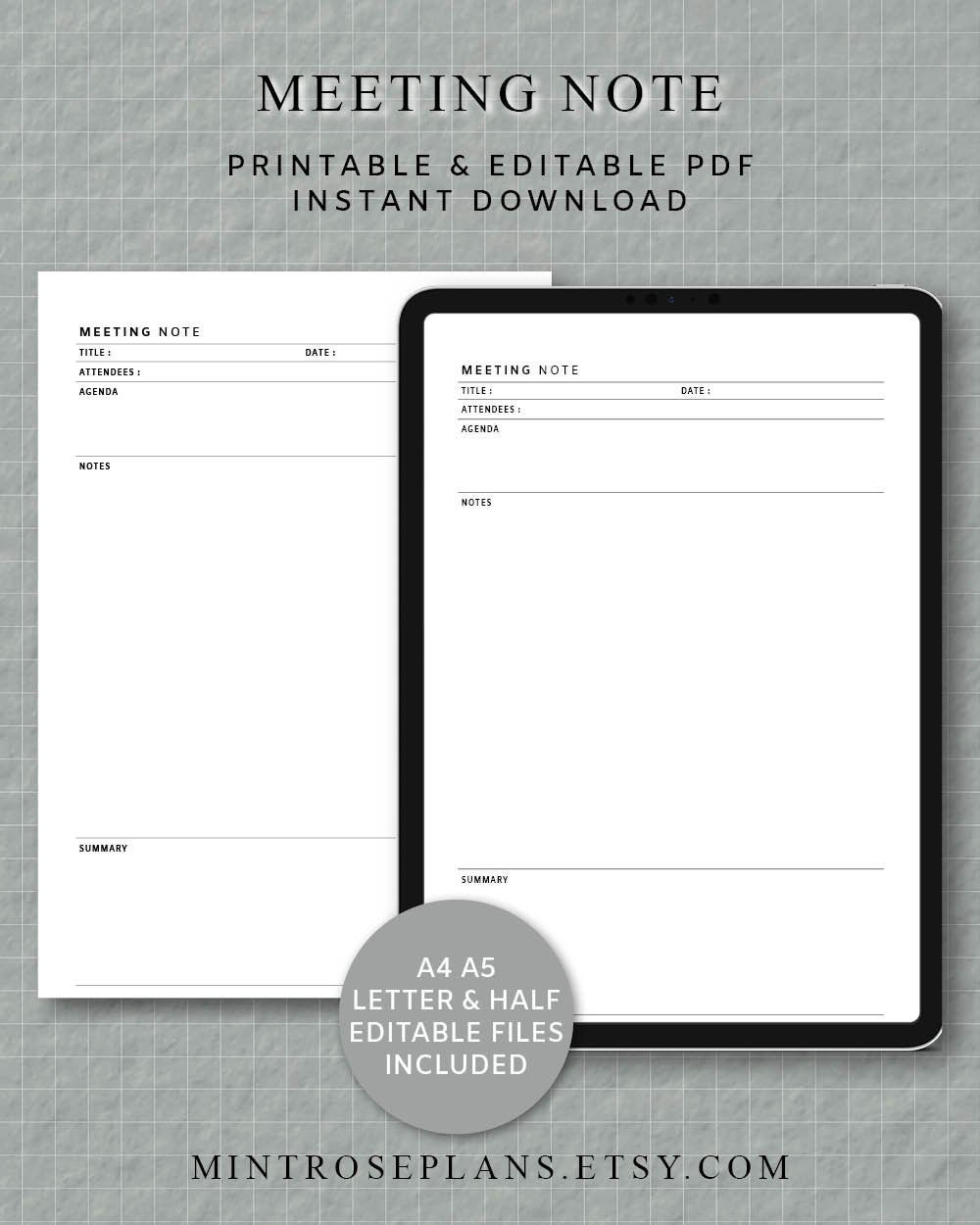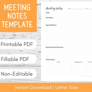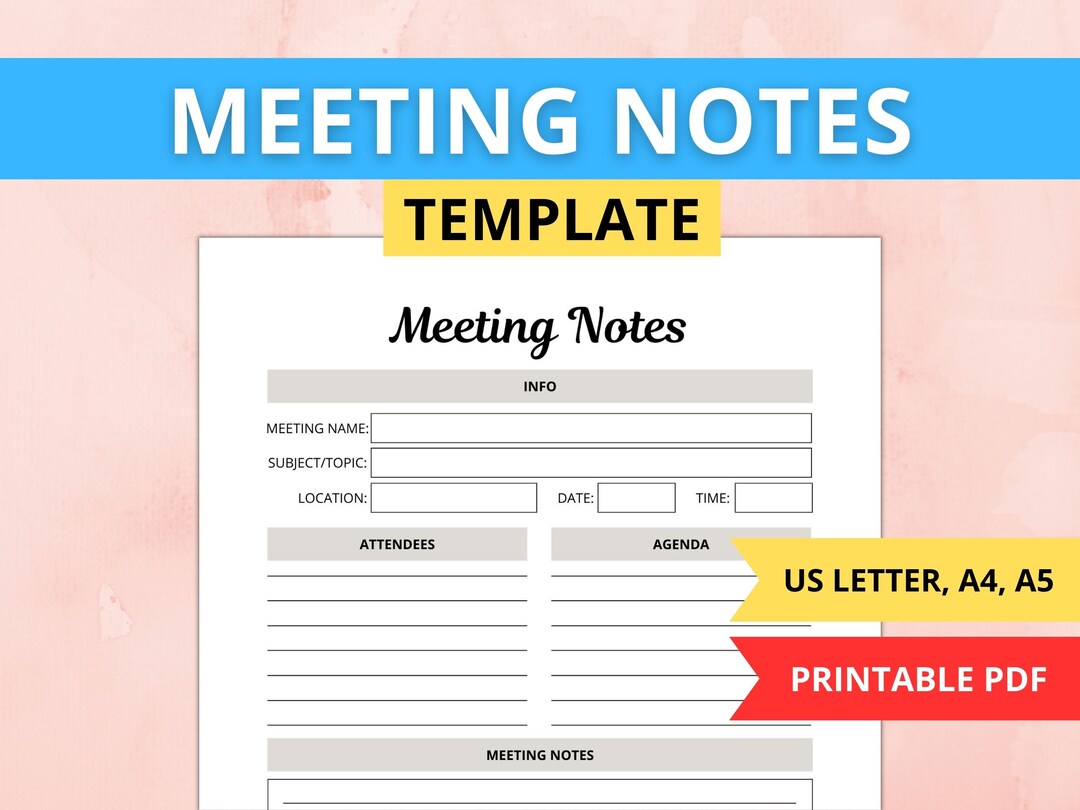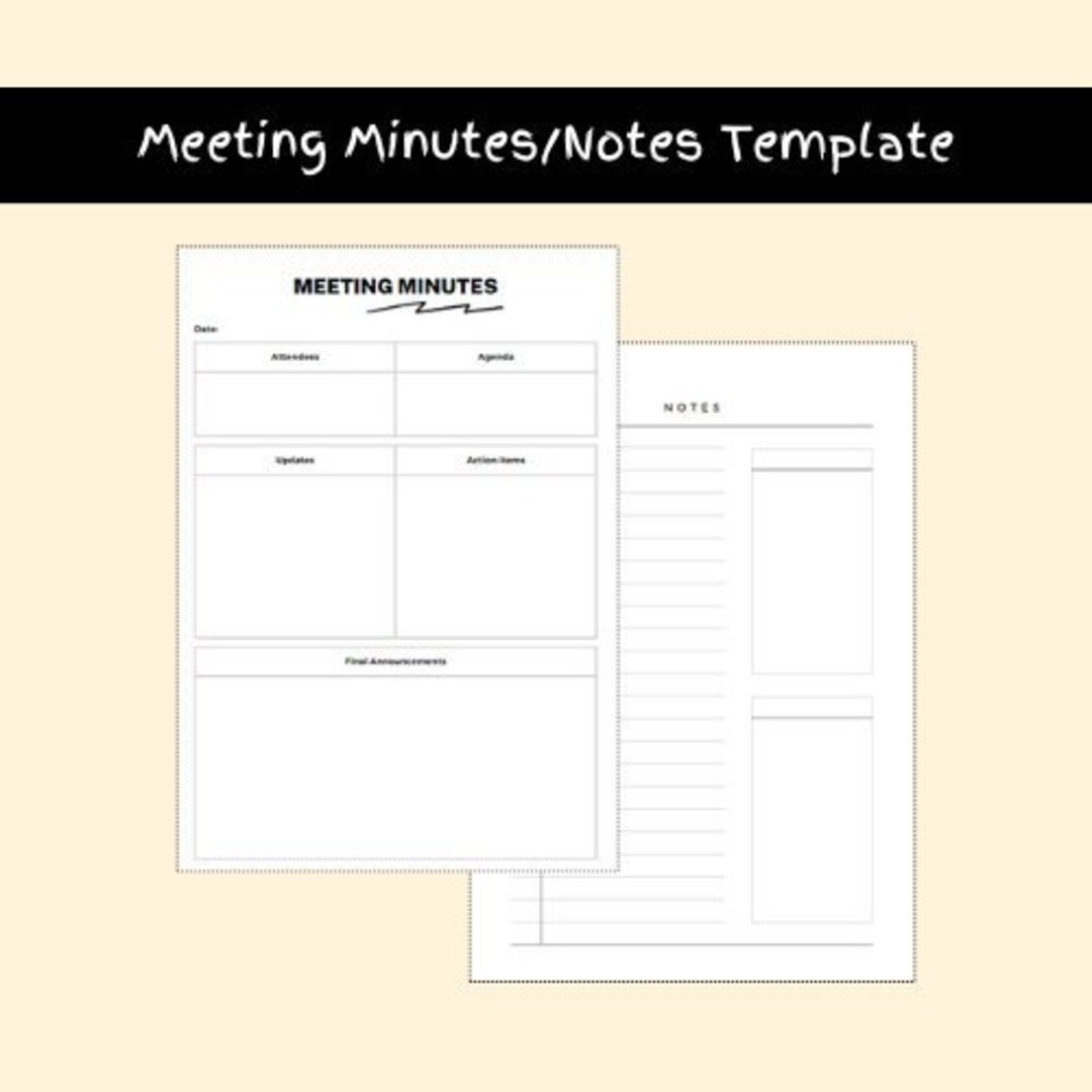 Meeting Minutes Template Instant Digital Download Printable Etsy