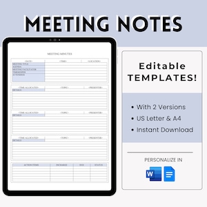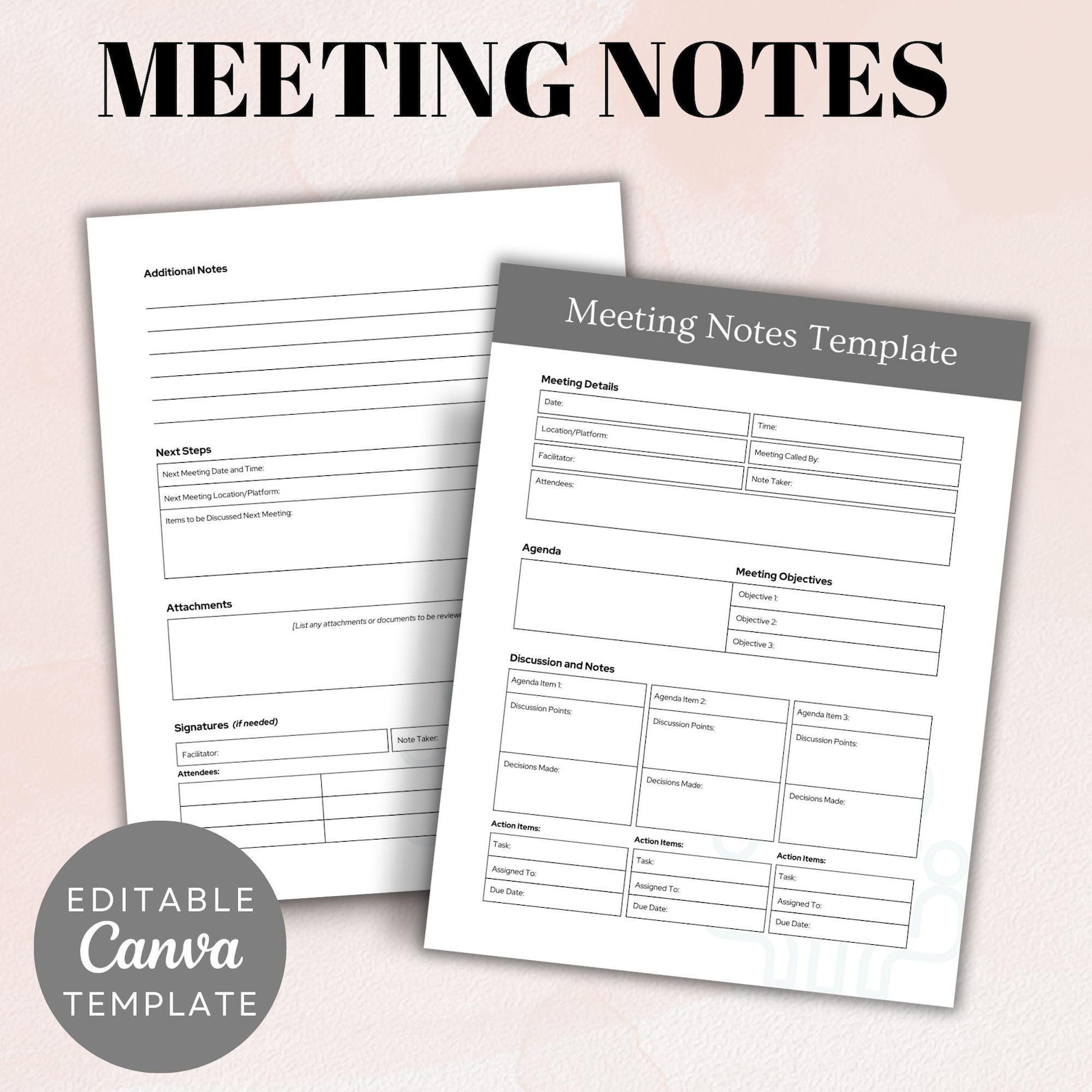 Meeting Minutes Template Editable Meeting Notes Printable Etsy