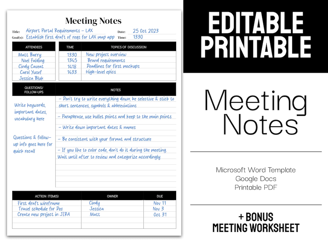 Efficient Meeting Notes Template: Streamline Your Business Meetings