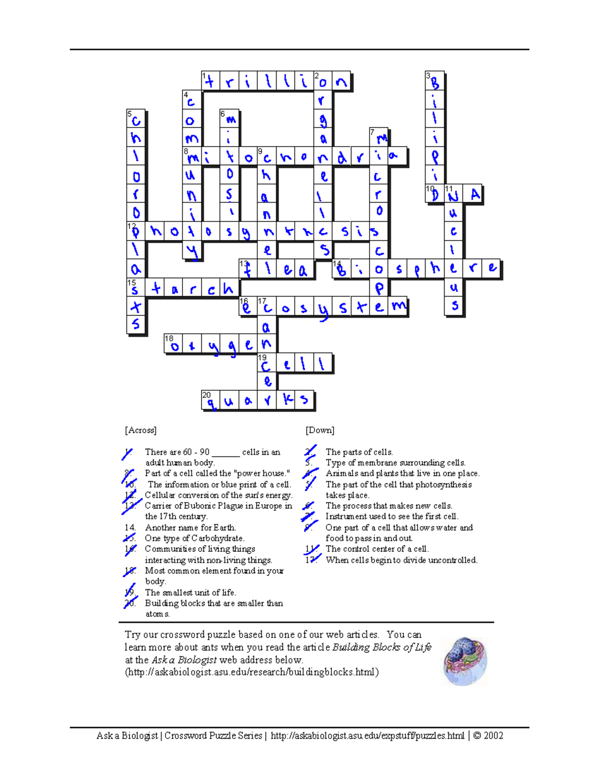 Building Block of Life Crossword Puzzle 2 Ask a Biologist Crossword