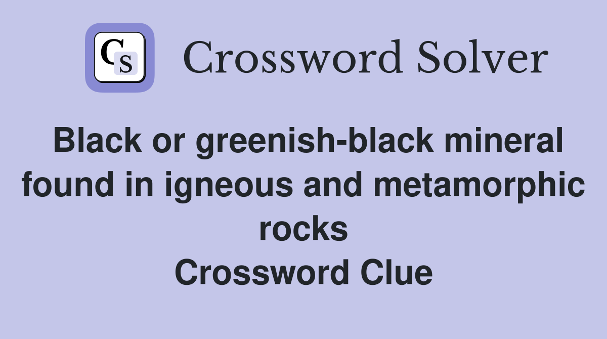 Black or greenish black mineral found in igneous and metamorphic rocks