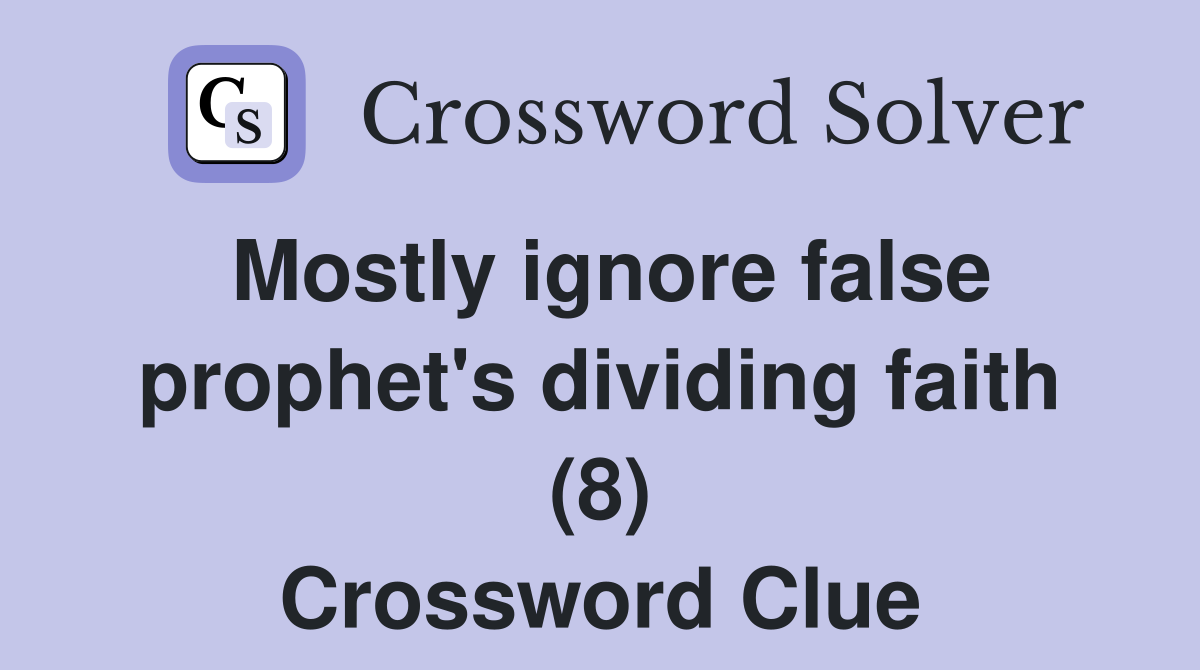 Mostly ignore false prophet #39 s dividing faith (8) Crossword Clue