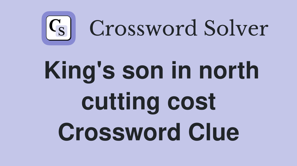 King #39 s son in north cutting cost Crossword Clue Answers Crossword