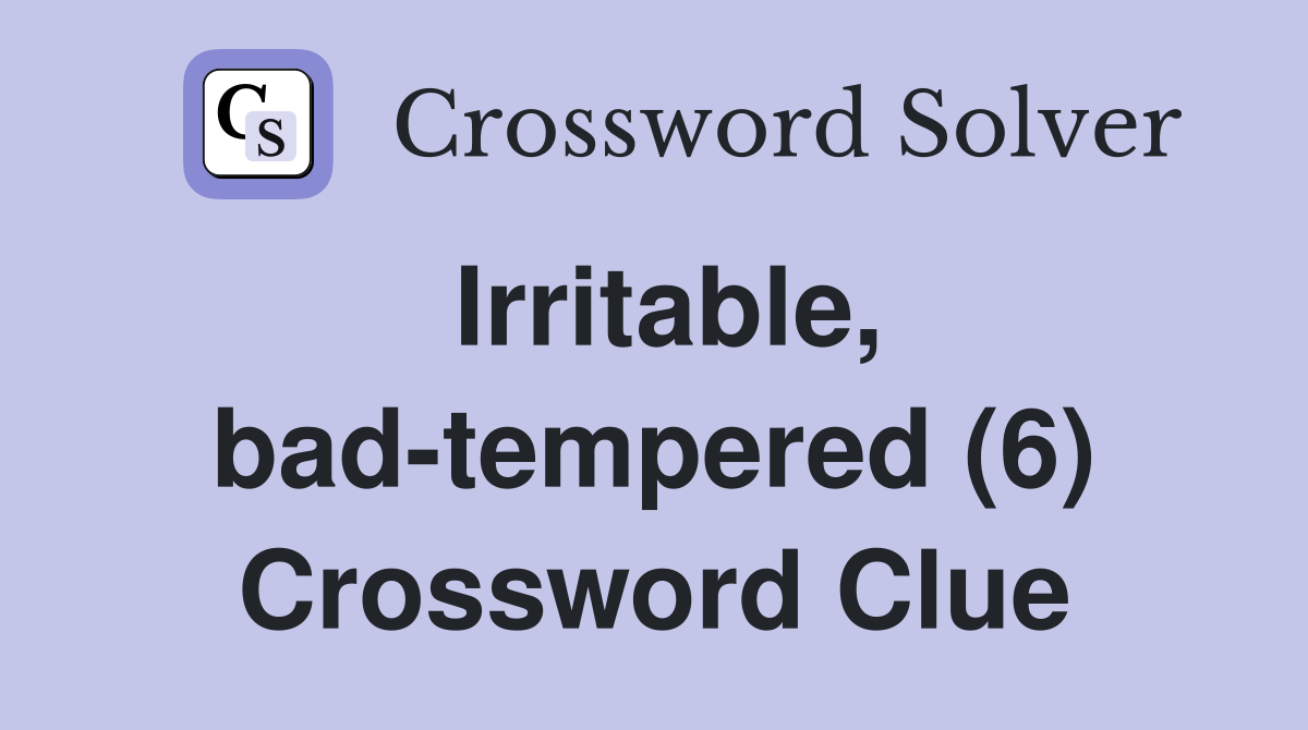 Irritable bad tempered (6) Crossword Clue Answers Crossword Solver