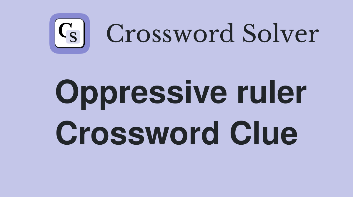 Oppressive ruler Crossword Clue Answers Crossword Solver