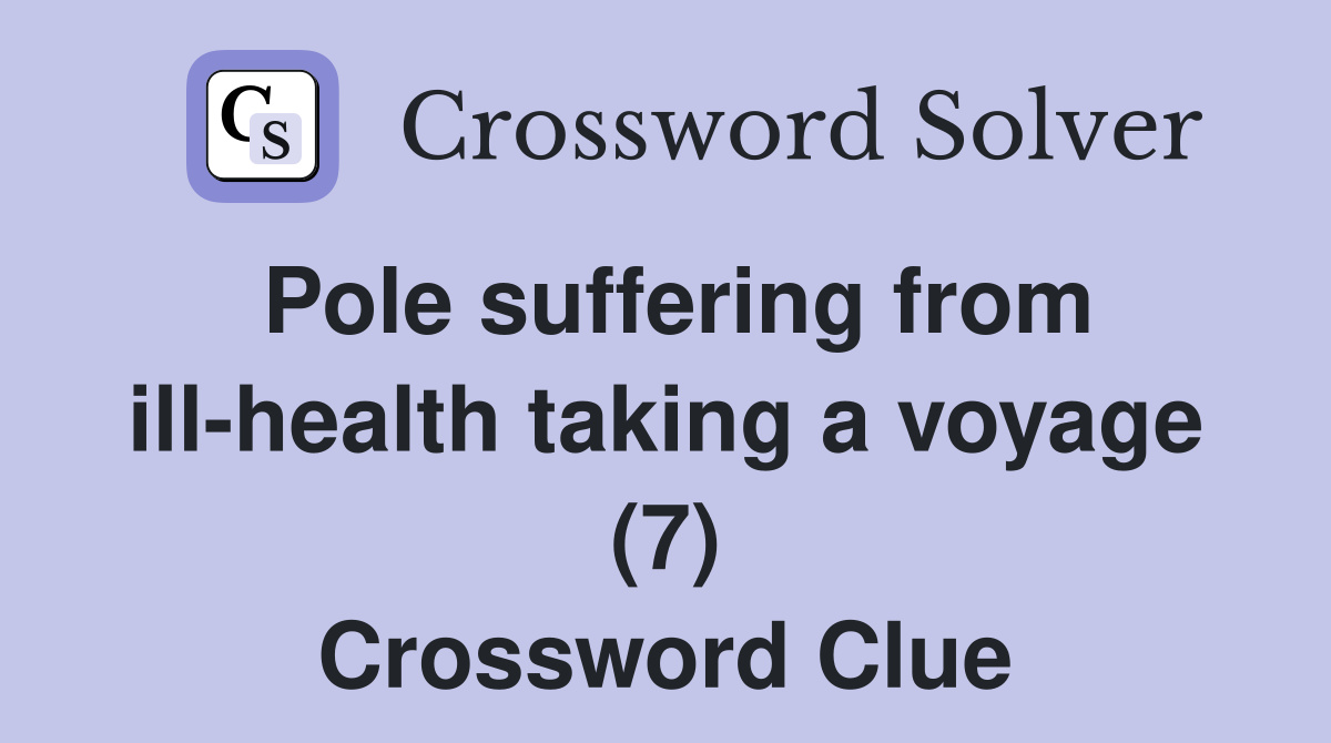 Pole suffering from ill health taking a voyage (7) Crossword Clue