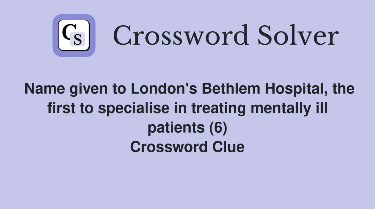 Name given to London #39 s Bethlem Hospital the first to specialise in