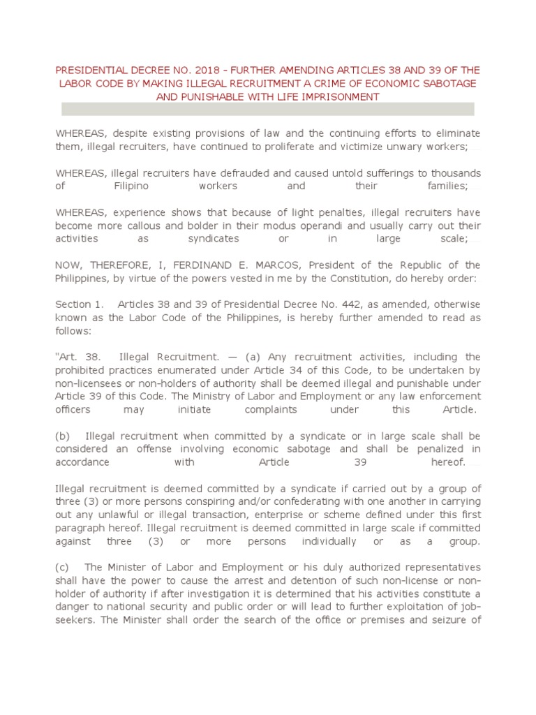 Illegal Recruitment PDF Crimes Crime Violence