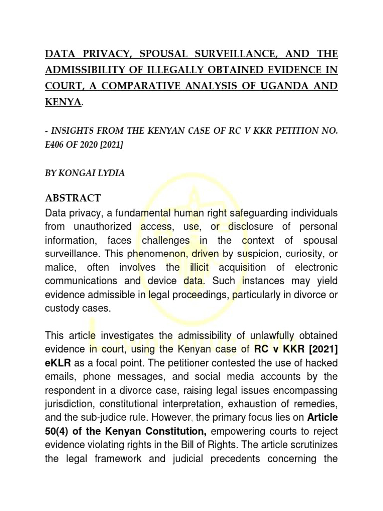 (DOC) ILLEGALLY OBTAINED EVIDENCE IN UGANDA