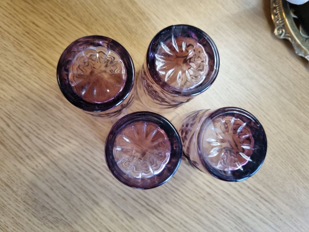 Vintage Pressglas Becher im Amethyst Ton 4er Set (Gebraucht) in
