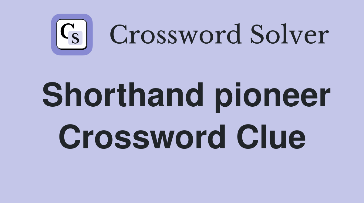 Shorthand pioneer Crossword Clue Answers Crossword Solver