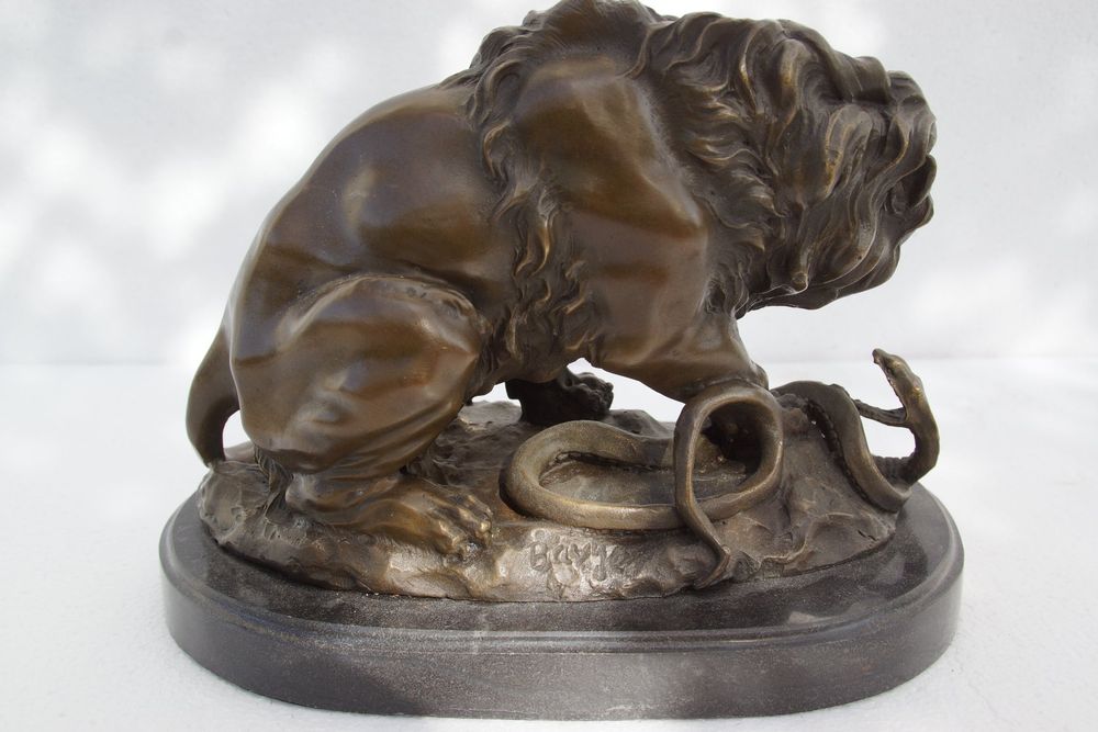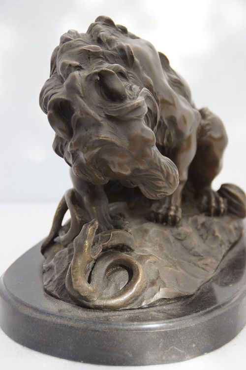 Bronze Skulptur: Löwe im Kampf mit Schlange Top Zustand (Gebraucht) in