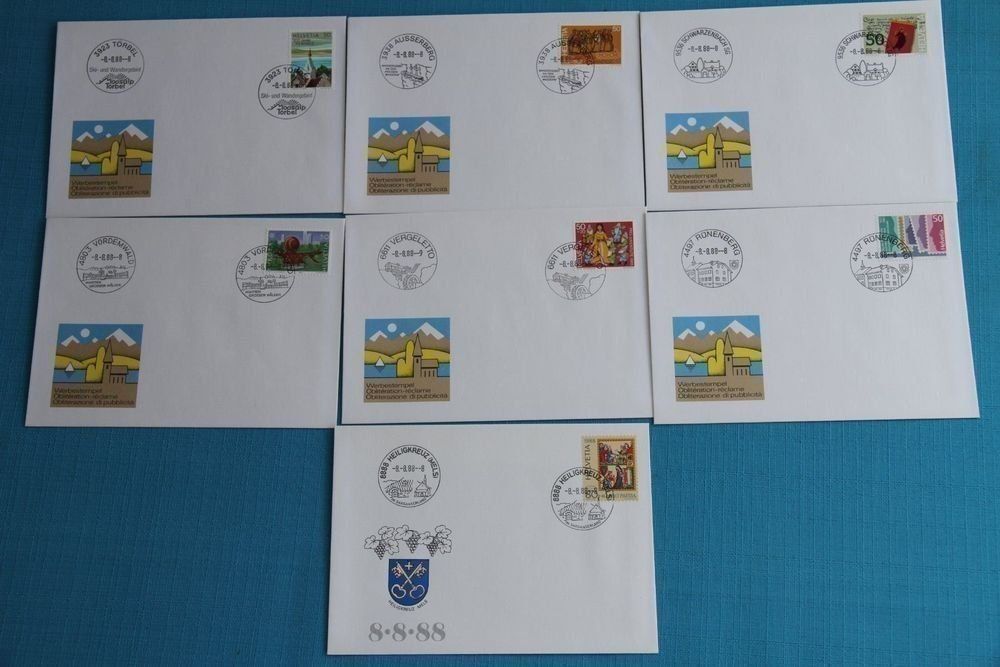 PTT Sonderbriefe bis 9 mal die 8 im Stempel 7 Stk (Neu (gemäss