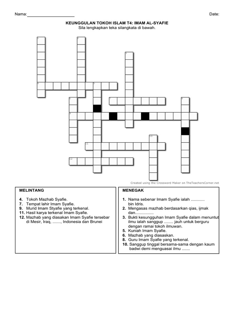 KAEDAH PENGAJARAN IMAM HANBALI Crossword