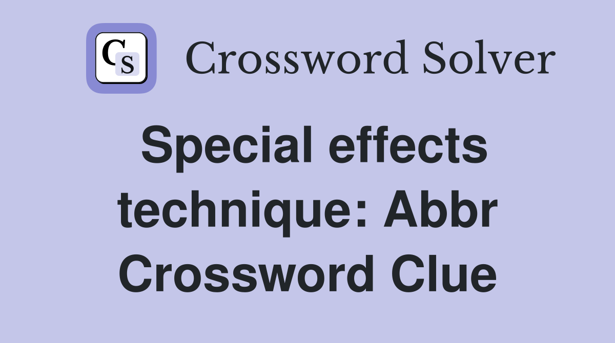 Special effects technique: Abbr Crossword Clue Answers Crossword