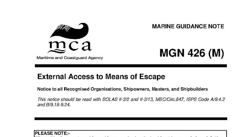 MGN 426(M) Guidance on Safety and Security for Escape Routes Studocu