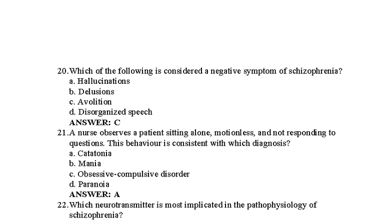 3P14 Midterm 2 Study Questions on Schizophrenia Symptoms and Treatments